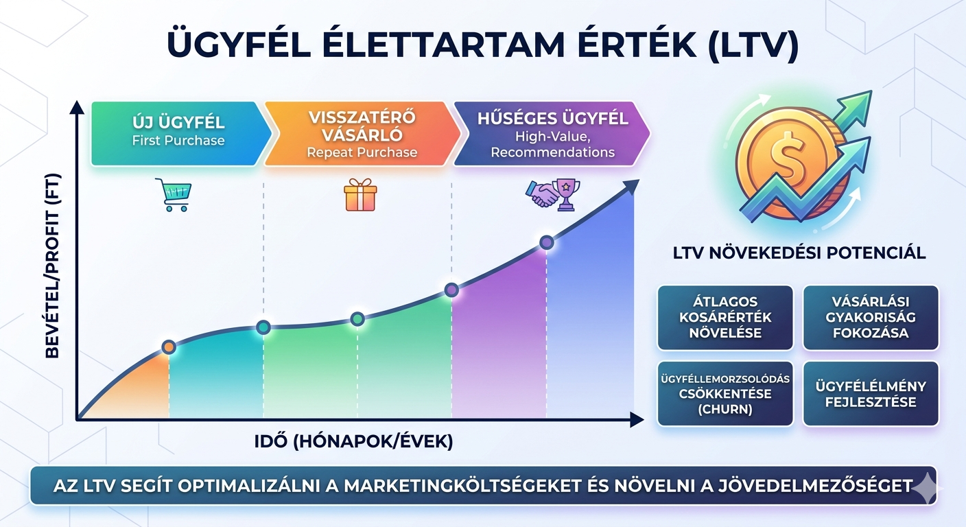 A modern marketing egyik legfontosabb, mégis gyakran félreértett mutatója a vásárlói életút értéke (Customer Lifetime Value – CLV vagy LTV). Sok vállalkozás kizárólag az első vásárlás bevételére fókuszál, miközben a valódi profit hosszú távon keletkezik. Ha nem ismered az LTV-det, vakon költesz marketingre. Ebben a cikkben bemutatom, hogyan számolható ki helyesen az LTV, és hogyan Read more about Hogyan számoljam ki egy vásárló valódi értékét (LTV)?[…]